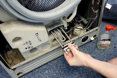 Примеси, содержащиеся в воде, со временем откладываются в виде накипи на нагревательном элементе. Дополнительно нитки, частички ткани и мелкий мусор с вещей также могут оседать на ТЭНе. Всё это снижает его теплопроводность и заставляет работать в более интенсивном режиме. В результате, ТЕН постоянно перегревается и со временем это приводит к выходу его из строя и необходимости замены.